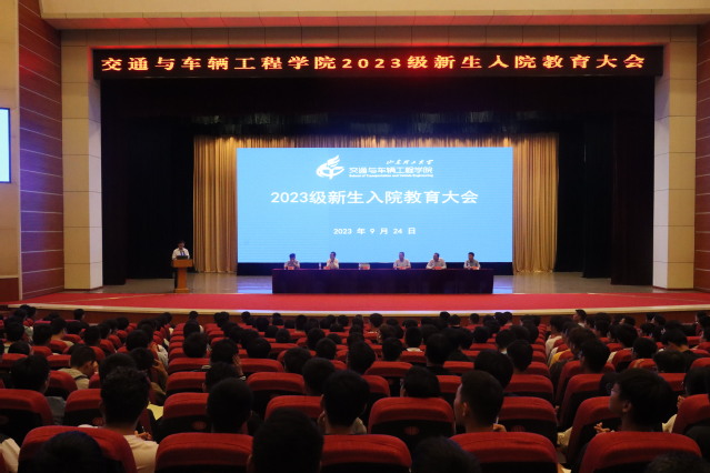 9月24日晚,交通与车辆工程学院在大学生艺术中心礼堂召开2023级新生入院教育大会。学院领导班子成员、各系部室负责人、全体辅导员、2023级全体班主任和700余名研究生和本科生新生参加大会。会议由学院党委书记褚兆勇主持。