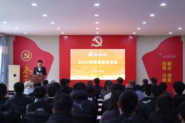 校党委常委、副校长崔焕勇出席仪式并致辞,教师工作部、校工会、离退休工作处、人力资源负责人,学院领导班子成员、各教工党支部书记、各系部室主任、近三年入职的青年教师及学生代表参加。仪式由学院党委书记褚兆勇主持。