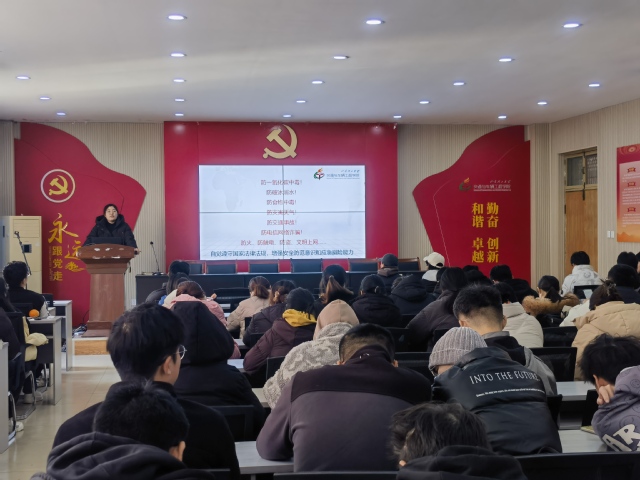 姜瑞瑞围绕诚信教育、寒假离留校相关工作部署、安全教育等方面展开。姜瑞瑞对本学期的工作进行了总结,对于考试,她再次强调考风考纪,作弊代价惨重,失信失德,影响深远,希望同学们坚守住底线,切勿存在侥幸心理。随后,姜瑞瑞向同学们传达了寒假离留校的相关工作通知,希望同学们在假期中要保持通讯畅通,也再次强调了假期安全的重要性,针对防一氧化碳中毒、防破冰溺水、防灾害天气、防食物中毒、防交通事故、防电信网络诈骗、防触电、防火、防盗、文明上网等方面,也详细开展了安全教育,教育引导同学们自觉遵守国家法律法规,增强安全防范意识和应急避险能力。