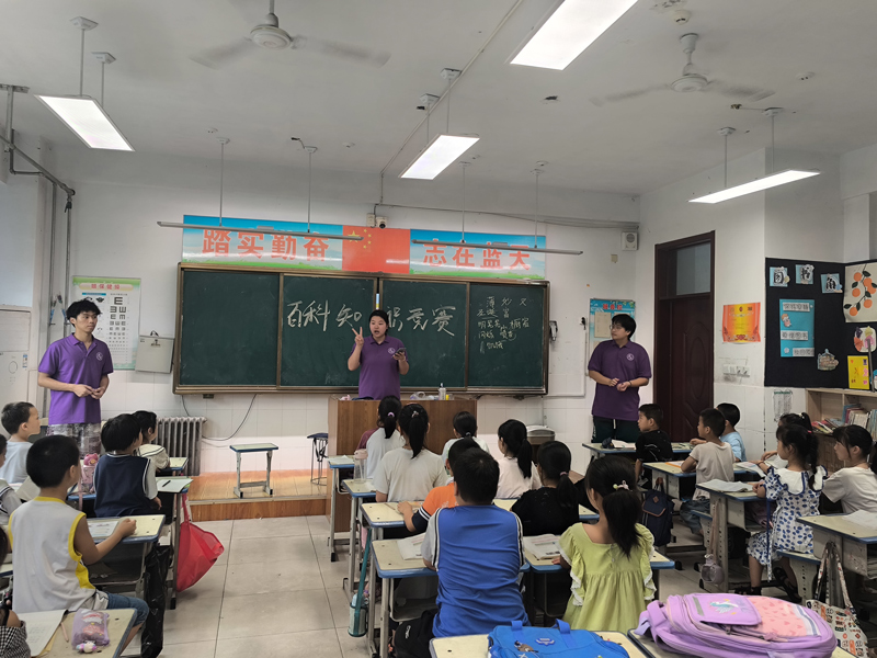 为充分激发孩子们的学习兴趣,全方位广泛地拓宽孩子们的知识面,切实有效地培养其思考能力和积极探索精神,经过精心筹备与组织,7月19日,山东理工大学“爱之传承”暑期社会实践团在德州市武城县四女寺镇明德小学成功举办了一场精彩纷呈的“十万个为什么”知识竞答大赛。带领孩子们勇敢地探索未知世界,去寻觅真理的光芒。