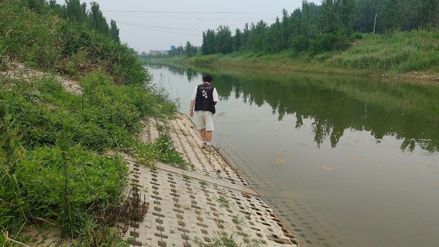 在队长的带领下,实践团成员分组对村内河流分段抽样,利用专业仪器检测水体结构,同时调查沿岸植被的生长情况和土壤情况,据此综合分析得出水质总体情况。除此之外,实践团还利用无人机溯源村内河流的源头,希望根据沿线水体活动制定有效的水质改善方案。