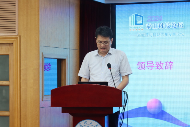崔焕勇代表学校致开幕辞,简要介绍了学校学科建设及发展情况,他表示,学校坚持以服务经济社会发展为导向,积极巩固车辆工程、交通运输等传统学科优势,奋力推进新能源汽车和智能网联汽车等新兴学科方向发展。本次论坛汇聚了新能源与智能汽车领域的专家学者和企业负责人,为学校师生提供了学习、研讨、交流的平台,期待大家借助这个平台,加强交流、促进合作,碰撞出思想火花,产出更多科研成果,为推进新能源与智能汽车产业发展贡献山理工力量。