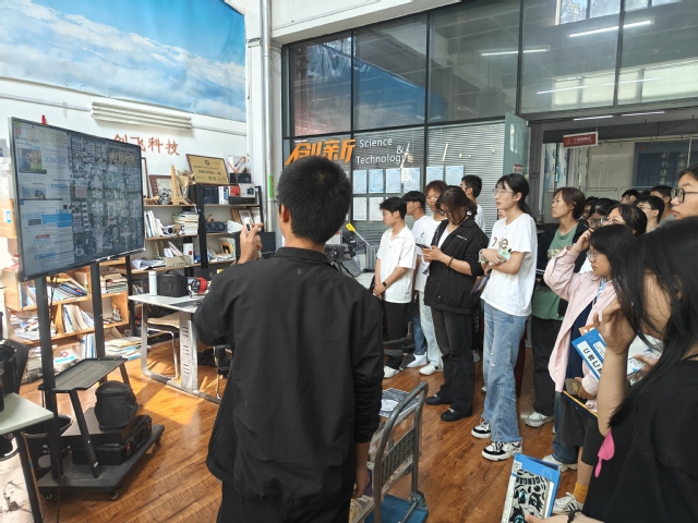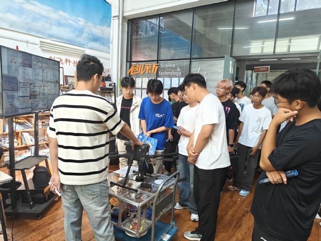 本次参观讲解团队由隋德鑫、盛利源、杨博超、张皓琪和顾明航等社团成员组成。新生们紧跟讲解员的步伐,认真聆听创飞科技社团的发展历程、孵化成果以及未来规划。作为学校创新创业教育的重要载体,创飞科技社团为同学们提供了实践锻炼、项目孵化、技术支持等全方位的服务。