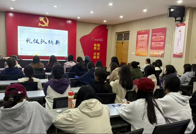 为丰富学生的校园生活,展示个人风采,交通与车辆工程学院于10月24日在12号教学楼217会议室开展礼仪队纳新宣讲活动,本次活动由礼仪队成员张恒慧宣讲、文静怡主持,交通学院24级全体女生参加。