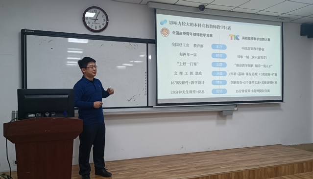 为推动教学创新,培养一流人才,不断提升我院教师教学创新能力,11月7日上午,我院在12教211教室举行教师教学创新大赛专题培训教学沙龙活动。本次培训会由分管教学副院长郑斌主持,特邀国家级教学创新比赛一等奖获得者、电气学院石君志老师主讲,我院近五年新引进青年教师及2024年拟参加校级教学创新比赛的教师参加。