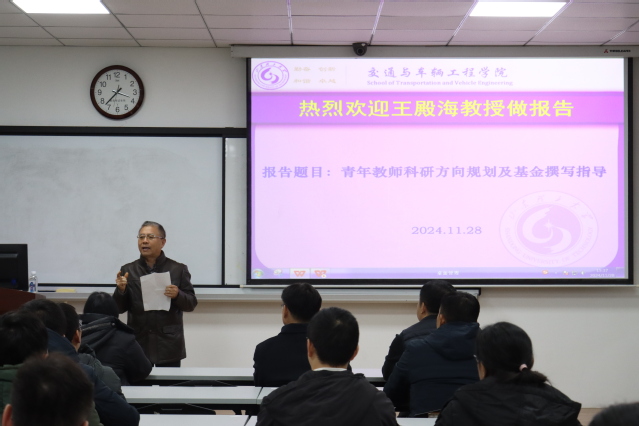 11月28日下午,交通学院邀请浙江大学王殿海教授在12号教学楼211室作学术报告。学院党委书记褚兆勇出席,学院相关学科教师参加,报告会由学院副院长孙锋主持。