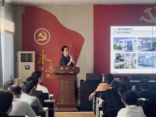 接着,宗红霞对国际营销班的招聘进行了详细讲解。她从潍柴集团海外业务的发展态势切入,详细介绍了集团海外市场的战略布局、业务规模、全球服务网络搭建成果。着重讲解了国际营销班人才招聘计划,包括海外营销服务工程师岗位的任职要求、职业发展路径以及薪酬福利体系。她强调,此次招聘为同学们提供了广阔的国际发展平台,期待更多优秀学子加入。