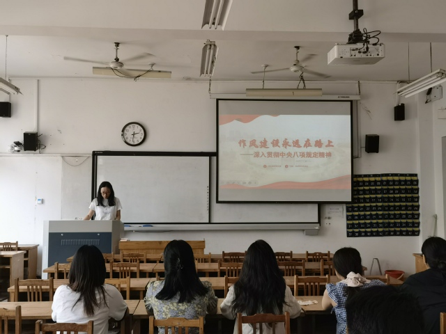 教工第三党支部书记邵明玉讲授了题为“明理、知要、践行,深入贯彻中央八项规定精神”的专题党课。