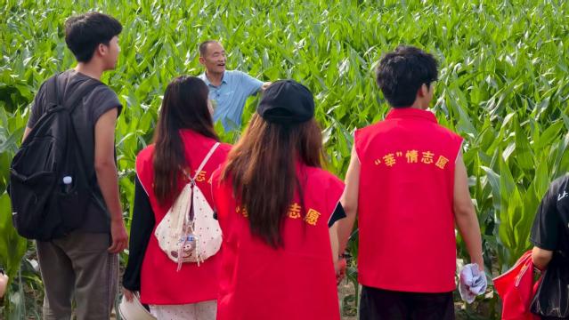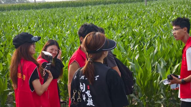 图为创飞科技实践团成员在探查杜家村农田状况 王昊昕摄