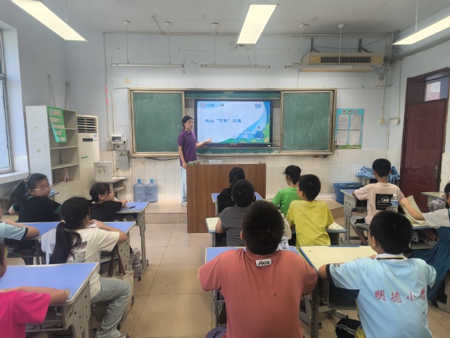随后,实践团成员杨怡莹以高放射性污染物如何放置的问题为切入点,向学生们介绍了北山“万年级”工程,在低降水量和高蒸发量气候下的荒无人烟的沙漠,建造起了世界上规模最大、功能最齐全的地下实验室。这种自力更生、艰苦奋斗的精神,正是 “两弹一星”精神的传承与写照。听完这些故事,孩子们纷纷流露出敬佩的神情,对“两弹一星”精神有了更深刻的理解与体会。