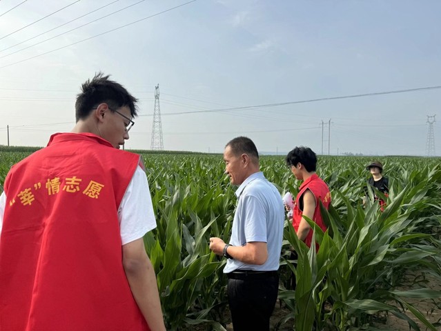 图为创飞科技实践团成员跟随鑫海缘工作人员一起勘查农田 王昊昕摄