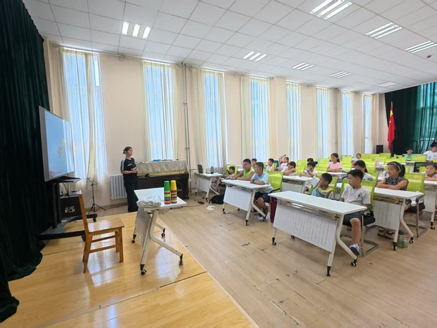 最后,实践团开展了“杯子舞”特色教学,旨在丰富孩子们的兴趣爱好,激发了他们的好奇心。实践团成员一边播放起节奏明快的音乐,一边示范杯子舞的动作,从简单的敲击桌面到杯子的翻转、传递,不停地讲解要领、耐心教授。孩子们跟着老师认真模仿,虽然一开始有些生疏,但很快就找到了感觉,教室里响起了整齐而富有韵律的杯子敲击声,每个人的脸上都洋溢着快乐的笑容。