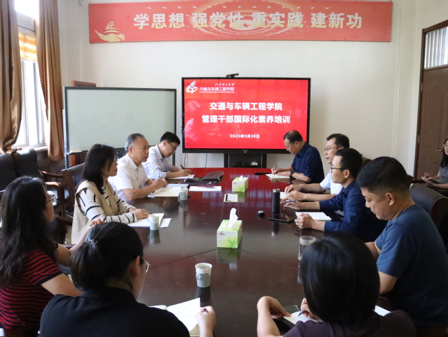 为提升学院管理干部队伍的国际化视野与工作素养,有力推动学院国际化办学水平与学科建设高质量发展,9月30日,交通与车辆工程学院在12号教学楼244会议室举办管理干部国际化素养培训会。会议邀请学校国际交流合作处处长牛书田、副处长李娜到会交流。学院领导班子成员、各科室负责人、工作人员参加培训。培训会由学院院长李波主持。
