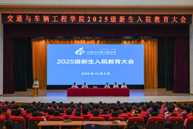 10月9日晚,交通与车辆工程学院在大学生艺术中心礼堂举行2025级新生入院教育大会。学院领导班子成员、各系部室负责人、全体辅导员、2025级全体班主任、714名本科生和145名研究生新生参加大会。会议由学院党委书记褚兆勇主持。