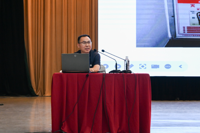 会议第二阶段,学院实验中心主任李守好从学院实验室简介、实验室事故案例警示、实验室安全知识、实验安全培训目标、培训考试系统的使用等方面为新生作了实验室安全教育报告。