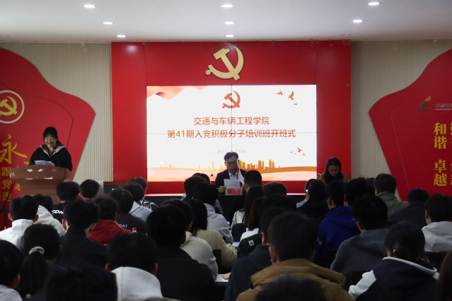 为进一步做好党员发展工作,加强对入党积极分子的教育培养和考察,10月23日下午,交通与车辆工程学院在12号教学楼217教室举行第41期入党积极分子党课培训班开班式。学院党委书记褚兆勇,团委书记、学工办主任孙兆风以及培训班指导老师蒋明真出席,学院125名入党积极分子参加,开班式由孙兆风主持。