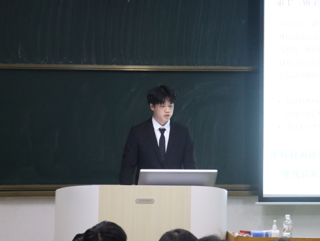 会议开始,王兴业同学依据《山东理工大学本科学生奖励办法》向评委师生及候选人详细介绍了此次答辩的评选标准。根据评选流程、评选办法和评选条件,在综合素质测评和民主评议的基础上,按照公平公正公开的原则开展评选,本次共有两名候选同学参加十佳大学生答辩。