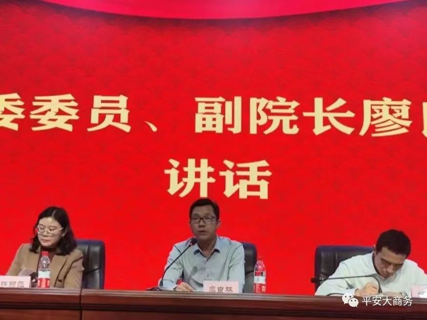 最后学院党委委员、副院长廖良林领导总结上一学年学生安全工作的成绩、经验和教训,指导今后如何更进一步开展好的学生安全工作,要求大家进一步提高认识,扎实工作。同时也强调荣誉的获得离不开学校的每一个人的辛勤努力和付出。他提出了三点意见,并且举了几起电信诈骗的例子,希望同学们能够引以为戒,提高自身的警惕意识。最后,他要求让我们树牢“生命至上、安全第一”的发展理念,以有力有效举措抓好安全稳定工作,为全省教育系统打好安全生产翻身仗做出商务职院应有贡献。