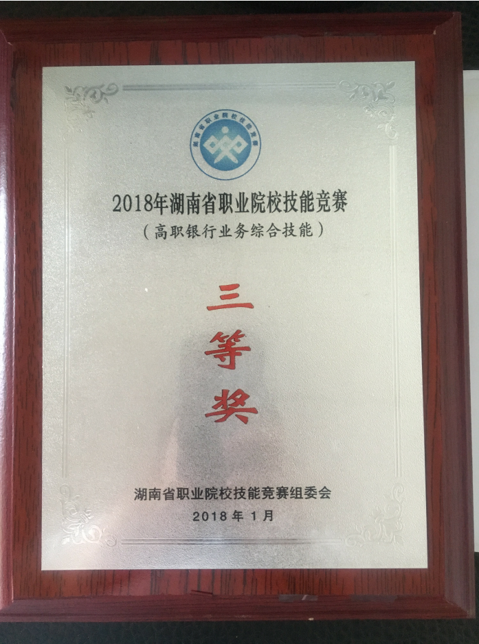 2、2018年湖南省职业院校技能竞赛银行业务综合技能大赛团体三等奖。