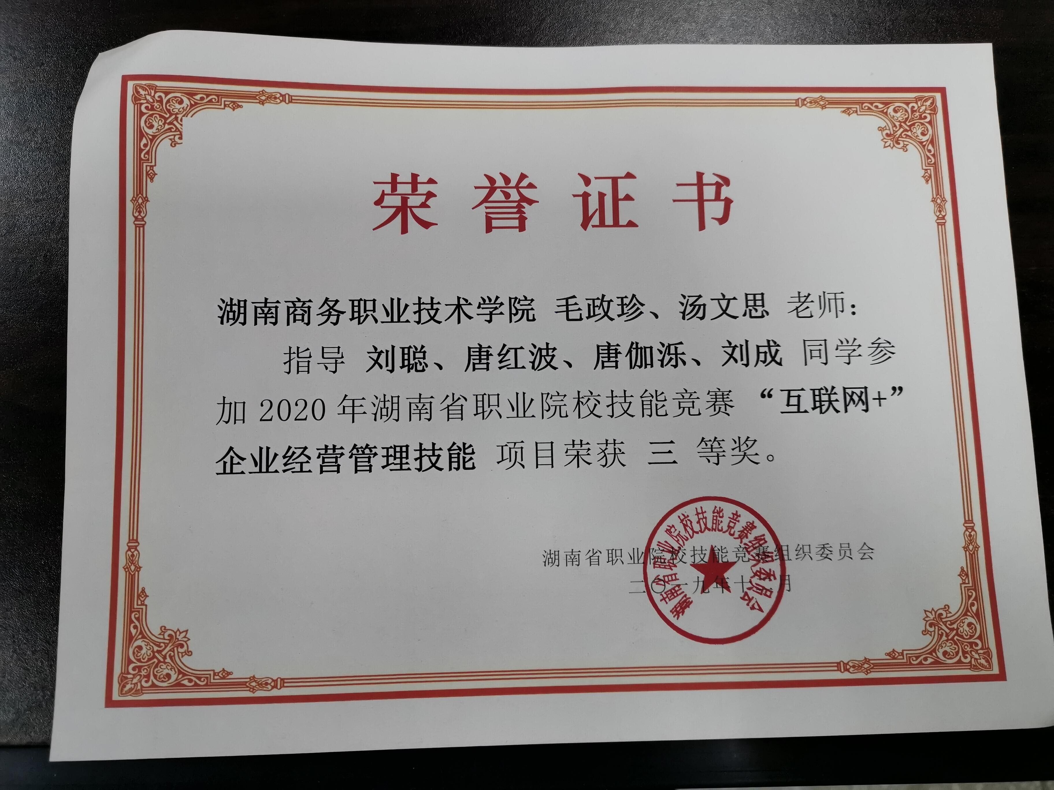 6、2020年湖南省职业院校互联网+企业经营管理技能大赛团体二、三等奖。