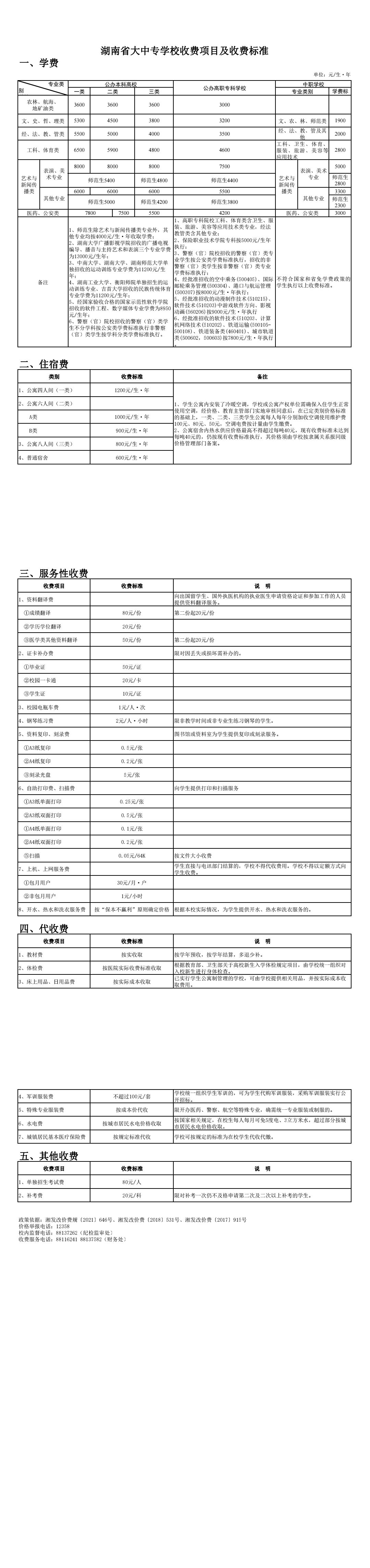 湖南省大中专学校收费项目及收费标准(2021年8月)
