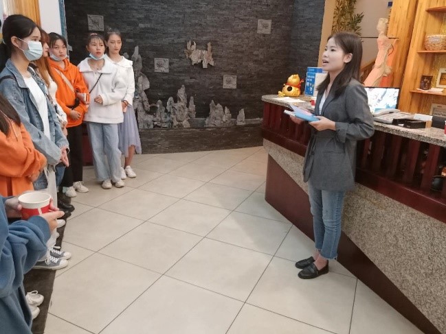 首先我们参观了茶叶产品销售区,与他们工作人员进行了交流,我们了解到茶馆这一茶产业发展的重要组成部分,对茶馆管理的理论知识有一个全面的认识。然后往届毕业生学长学姐带我们参观了茶馆的风格设计,和我们分享工作经验 ,学姐告诉我们“也许你们毕业后出去工作和你们预期的想法不太一致,但是只要一直坚持下去,你现在的努力会得到一样的回报”。