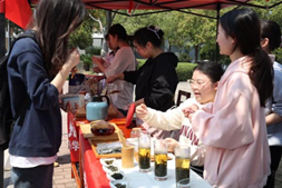 活动伊始,悠扬舒缓的音乐在校园内响起,志愿服务团队的成员为师生们带来了精彩的茶艺表演。玻璃杯中,嫩绿的茶叶随着“凤凰三点头”的冲泡手法上下翻飞;盖碗里,红艳的茶汤在“春风拂面”的技艺中散发出醉人香气。茶艺表演的同学们一边演示,一边讲解着茶道礼仪和文化内涵,他们告诉同学们:“玻璃杯看茶舞,盖碗品茶韵,这都是传承千年的智慧。”在DIY手工制作区,同学们兴致勃勃地动手制作茶包香囊,志愿团准备了茉莉花茶、陈皮、桂花等多种材料,同学们可以根据自己的喜好进行搭配。“我要做一个安神助眠的茶包送给妈妈。”有位同学认真地挑选着材料。活动现场,欢声笑语不断,一个个精美的茶包香囊在同学们手中诞生。