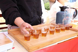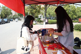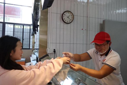 ▲志愿团给校园工作人员送茶