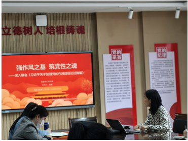 4月22日13:30,支部书记袁鑫于S2-306教室开启了一堂意义深刻的党课。袁鑫书记以“强作风之基,筑党性之魂——深入领会《习近平关于加强党的作风建设论述摘编》”为题,深入剖析党的作风建设的内涵与重要性,引导党员教师深刻领悟作风建设对教育事业发展的关键引领作用,为后续学习与实践筑牢思想根基。整个4月,支部组织了多场集中学习。从4月2日12:30通过腾讯会议开展的“党的作风关系人心向背,决定党和国家事业成败”等内容学习,到4月22日14:10关于“推进作风建设常态化长效化”的研讨,党员们围绕《习近平关于加强党的作风建设论述摘编》,在张丽莉、曾鸣等多位领学人的带领下,逐章逐节深入研读,结合自身工作实际,周训菊、倪莹莹、虢海燕、李娜等党员积极参与研讨发言,在交流碰撞中深化对作风建设的理解。