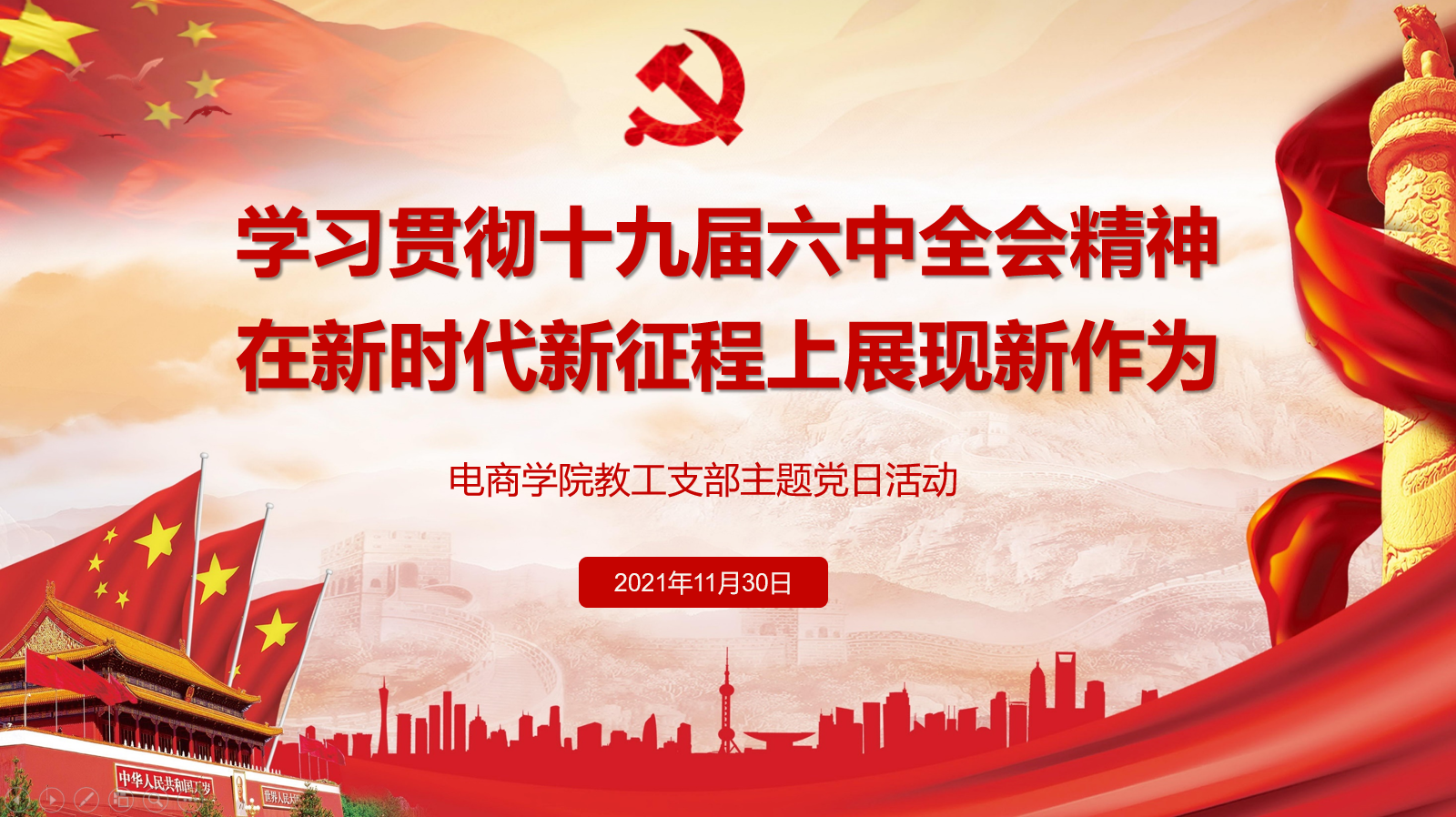 11月30日星期二下午,电商学院教工党支部开展学习贯彻十九届六中全会精神 在新时代新征程上展现新作为主题党日活动,电商学院教工支部全体党员参…【查看全文】