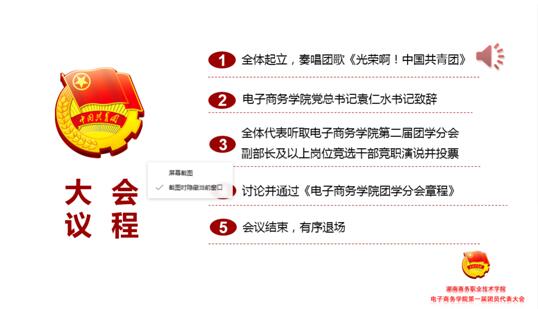 大会由电商学院第一届团学分会主席高宏华主持,电子商务学院党总支书记袁仁水、团总支书记陈龙、辅导员马知顺老师、李少艾老师、黄冰凤老师、侯研竹老师、陈博老师、方舟老师、袁石磷老师、电商学院第一届团学分会主席团、全体部长、各年级团代表共同出席了本次大会。