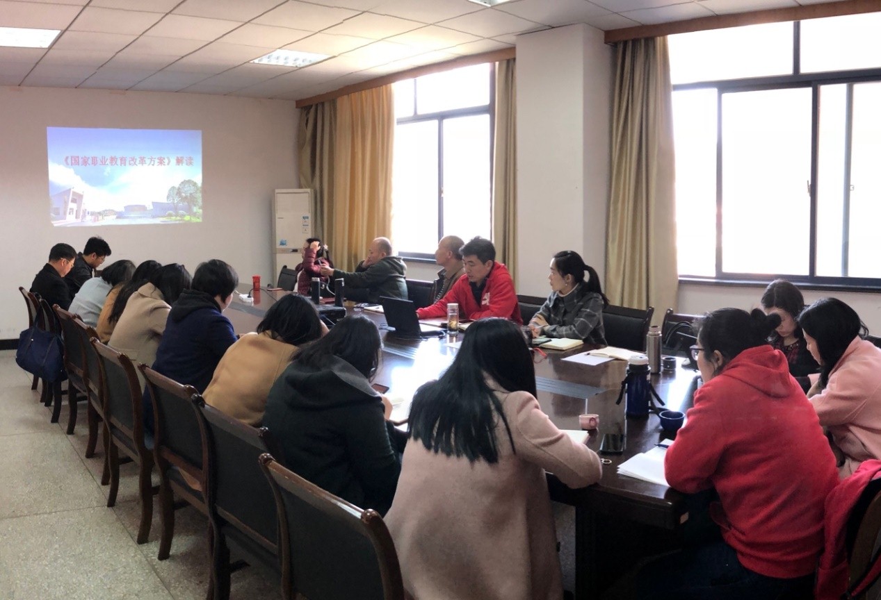 其次,电商学院党总支副书记、院长曾鸣带领党员深入学习《国家职业教育改革方案》的主要内容,指出职业教育是培养高素质劳动者和技术技能人才,阐明了新时代职业教育的使命和职责,就是要为经济高质量发展培养更多大国工匠和能工巧匠;并对贯彻落实方案提出了建议,我们要按标准建设,作为党员要看到做到想到,使命神圣、责任重大。