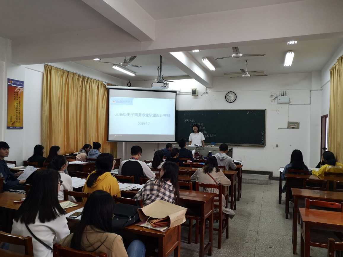 2019年5月7日下午,电子商务学院2019届毕业设计答辩工作如火如荼的进行着,本次毕业设计答辩是全体老师参与,同时原则上要求每位同学返校进行毕业设计答辩。为了保证答辩工作的顺利高效开展,每个专业配备了一间答辩准备室,学生可在准备室提前做好答辩的相关准备工作。另外,二级学院根据每个专业的学生人数准备了三间电子商务与移动商务专业答辩室,一间国际贸易专业答辩室,二间电子商务技术专业答辩室。