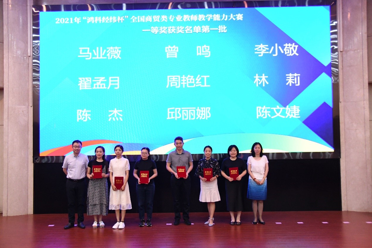 会议中,曾鸣院长和李喜老师与来自全国各职业院校的100名老师,角逐于“鸿科经纬杯”全国商贸类专业教师教学能力大赛。在大赛中,我院老师呈现了课证融通的教学思考与探索,有机融合新技术、新业态、新模式,全面展现教师的职业素养和课堂风采,最终,曾鸣与李喜分别获得一等奖和二等奖的好成绩。