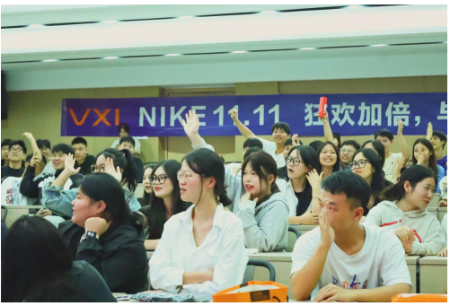 大会中,NIKE企业工作人员向学生们展示了企业特色文化,以及向大家介绍了双十一实训的有关内容。在大会过程中,同学们认真听讲,与企业人员积极互动。最后电商学院党总支副书记刘明浩发言,鼓励同学们在双十一实训当中要充分展现出自己的专业技能,希望大家能在此次实训中学习到更多的知识,对农商专业有更深刻的了解,在实训的日子里能够有满满的收获。