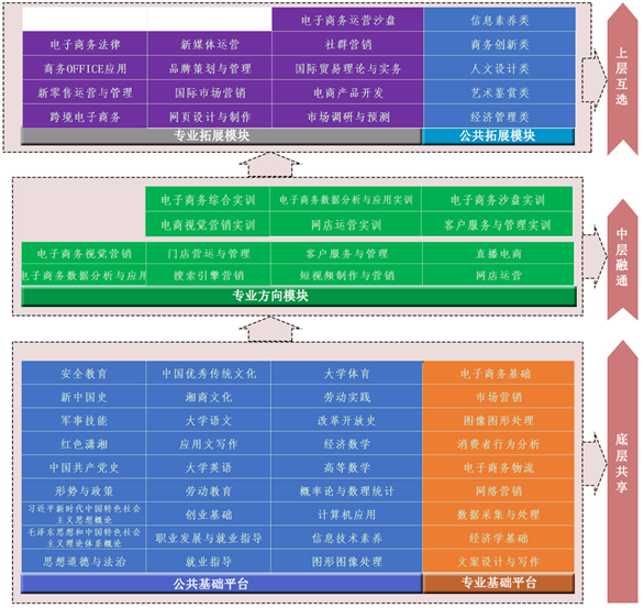 电子商务专业创办于2003年,一直走在全省发展前列,是国家骨干专业(2018)、中央财政支持建设专业(2011)、全国供销合作社电子商务职教基地(2017)、全国农村电子商务师资培训基地(2018)、省一流特色专业群(2018)和省示范特色专业群(2015)核心专业、省技能抽查优秀专业(2014)、省现代学徒制试点专业(2019),网店运营推广、电子商务数据分析1+X职业技能等级证书试点专业(2019),建有省电子商务生产性实训(教师认证培训)基地(2012)、省网络营销生产性实训基地(2017)、省级教育教学创新团队(2020)、职业院校教师素质提高计划国培基地(2017)等。