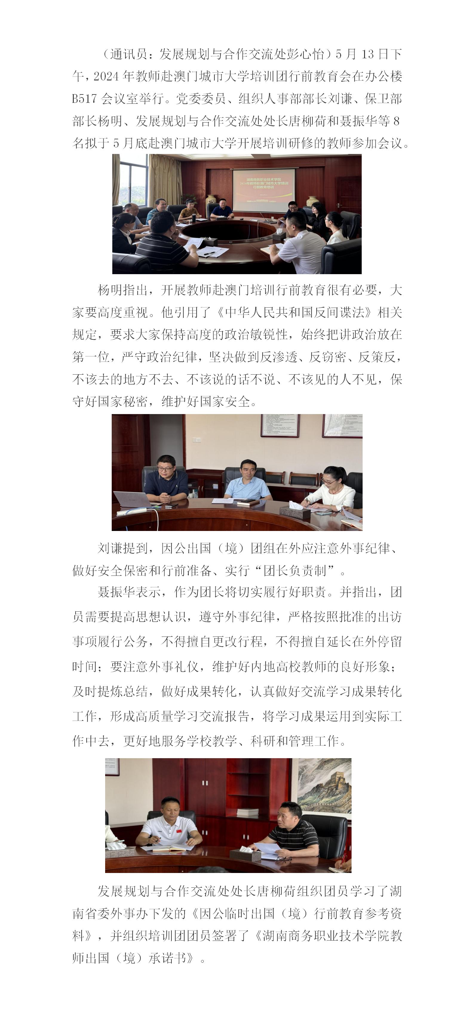 学院举办2024年教师赴澳门城市大学培训团行前教育会