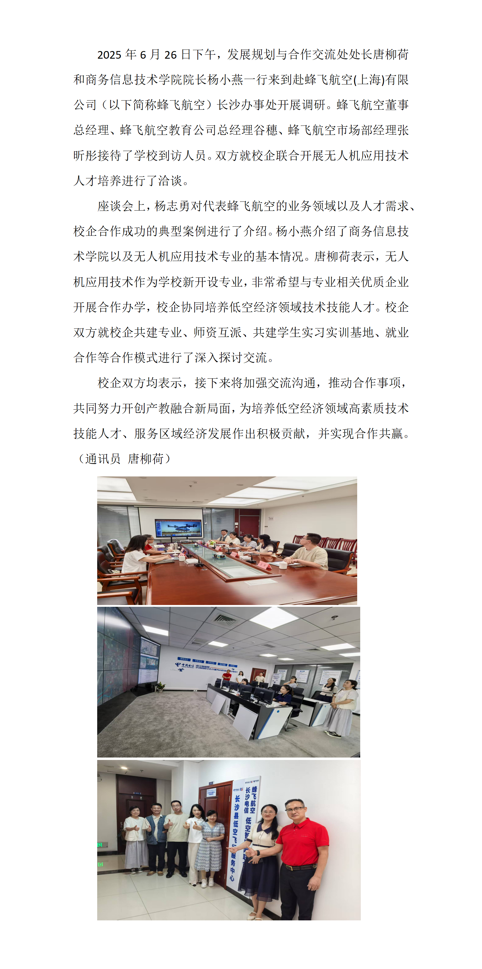 发展规划与合作交流处和商务信息技术学院联合 赴蜂飞航空(上海)有限公司长沙办事处开展调研