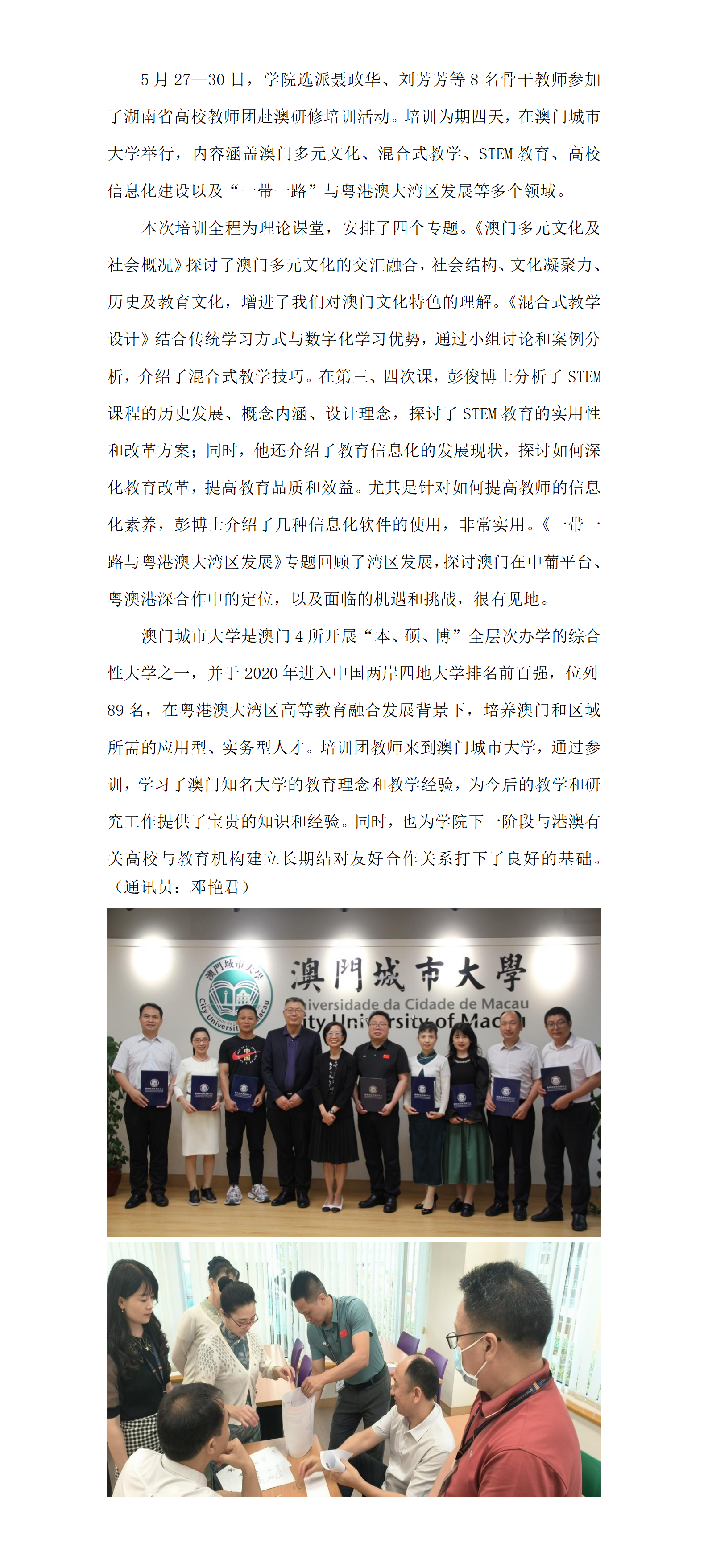 学院教师赴澳门城市大学开展培训研修活动