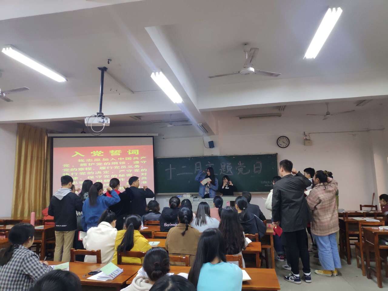 二、政治生日,集中为今年下半年政治生日的党员颁发生日贺卡,并重温入党誓词。