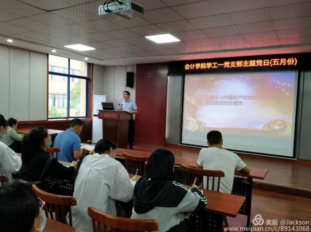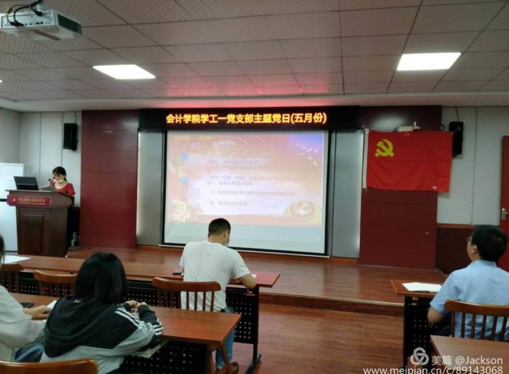 会计学院学工一党支部于2020年5月29日中午12:30在二教201召开五月份主题党日活动,此次党日活动是学校疫情防控阶段性胜利复学后线下现场首次召开支部主题党日活动。参加此次会议的人员是会计学院学工一党支部全体成员,杨巧同志主持本次会议,本次主题党日主要内容有: