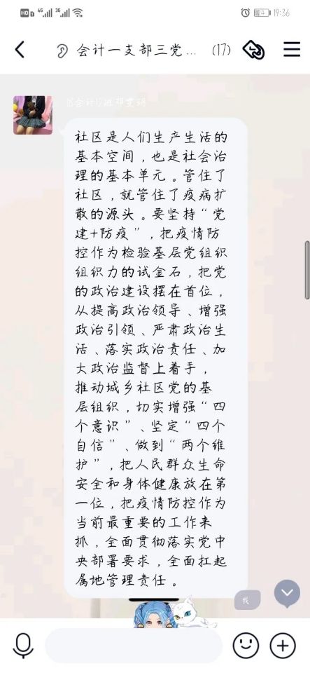 通过这次会议大家都意识到了社区是疫情防控的最后一道防线,也是落实联防联控、群防群控的关键。并且,群众路线是党的生命线和根本工作路线,我们要坚持走好防控工作群众路线,构建疫情防控的人民防线,充分宣传疫情防控教育,做到“地毯式”防控。相信作为学生党员的我们会积极参与到疫情防控中去,不添乱,不信谣,不传谣。