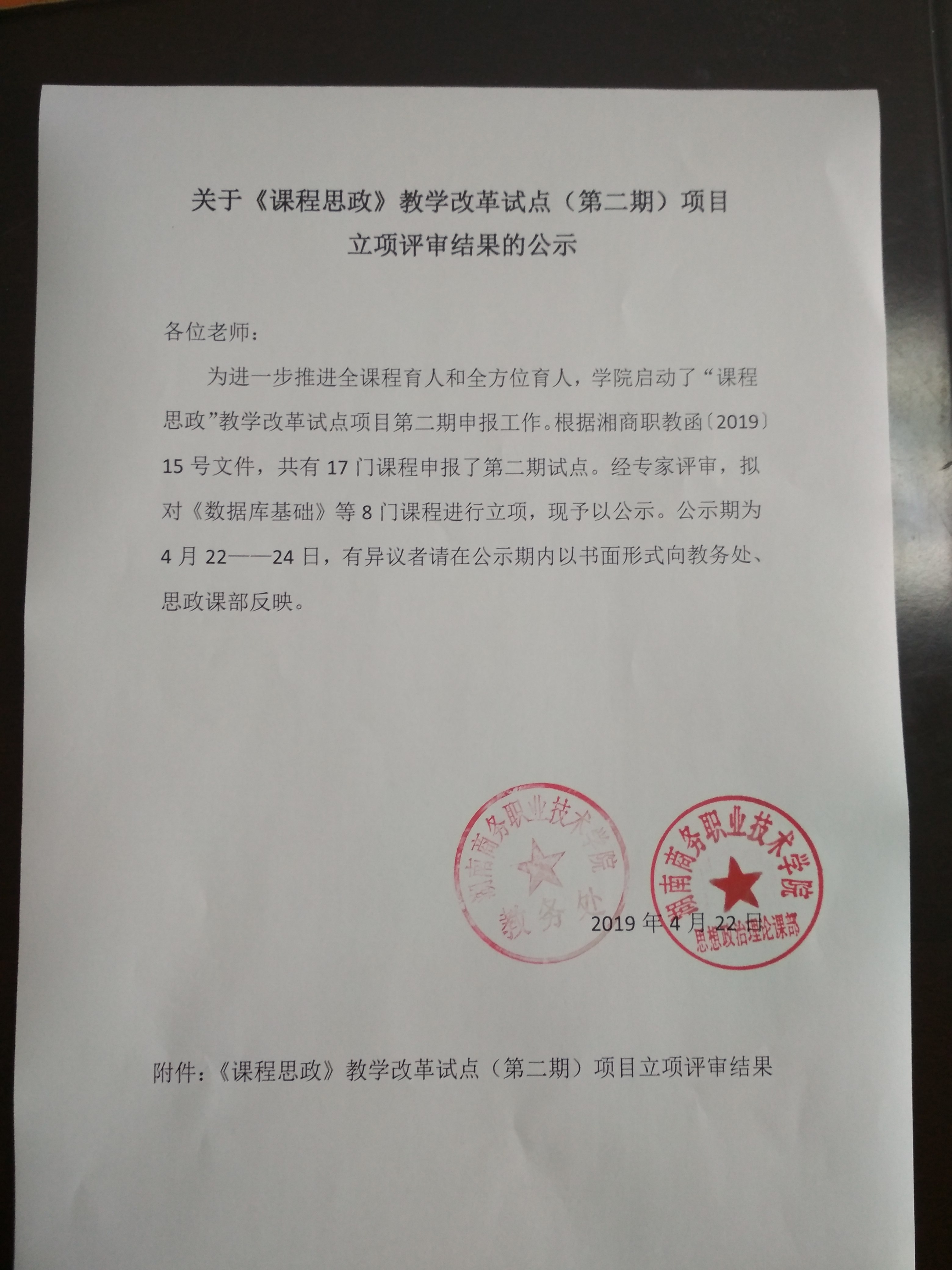 关于《课程思政》教学改革试点(第二期)项目立项评审结果的公示