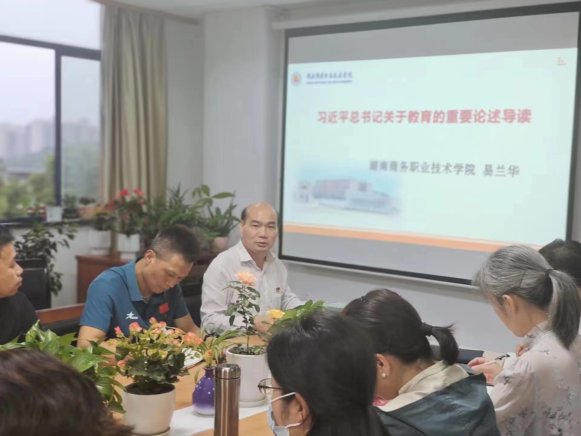 基础课部党支部于5月5日下午在支部会议室B215开展主题党日活动,听取学校党委委员、副校长易兰华同志的党课《习近平总书记关于教育的重要论述导读》。活动由吴玉光同志主持。