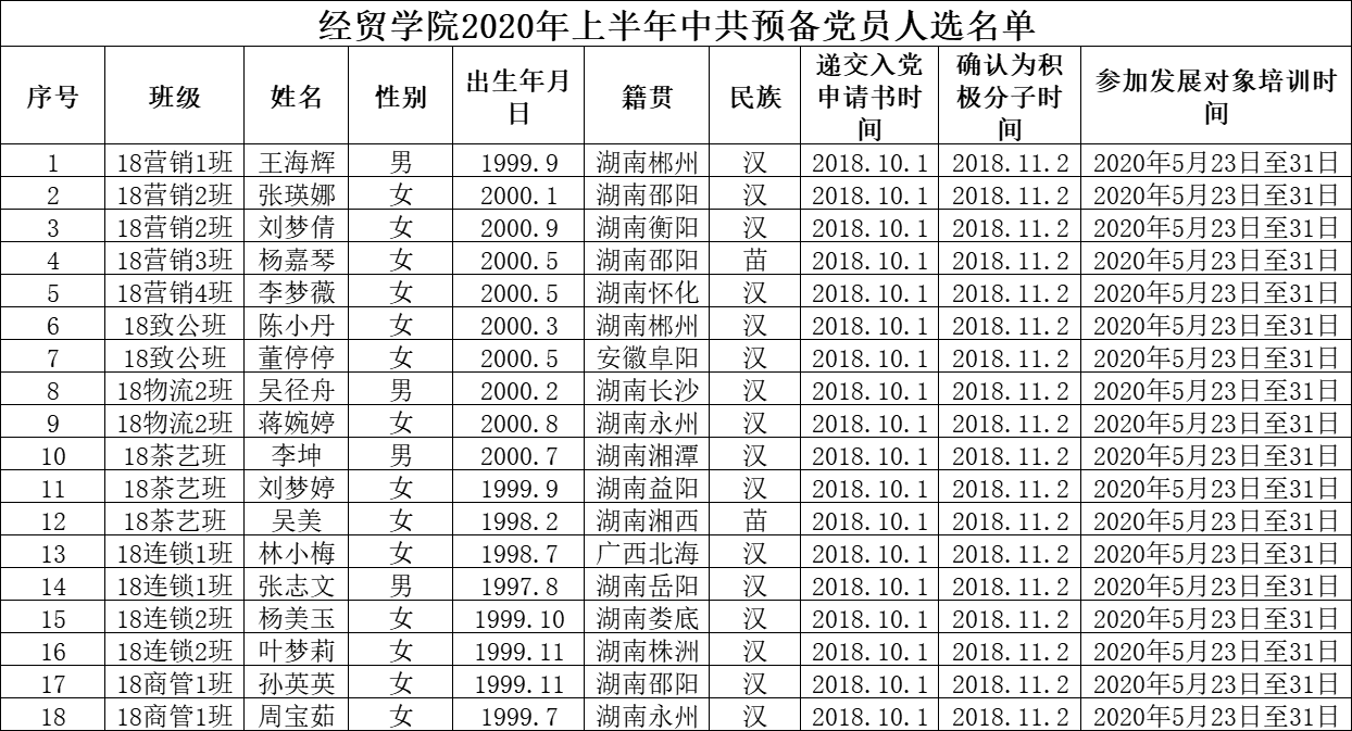 关于确定王海辉等18名同志为发展对象的公示