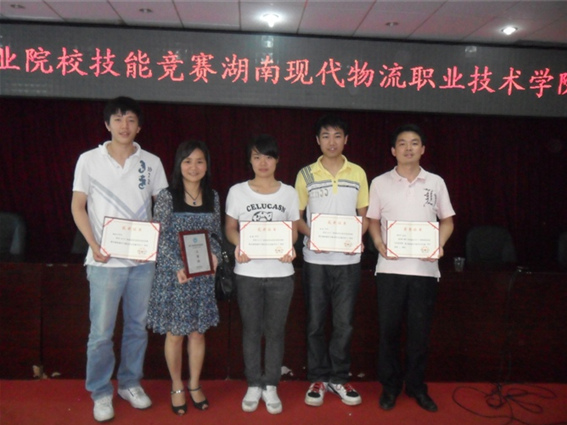5月14日,获得一等奖的赛手(杨星、徐松年、曾璐)代表我校参加了在湖南现代物流职业技术学院举办的“2012年湖南省职业院校物流技能竞赛”大赛,并荣获三等奖。胜不骄,败不馁。我们将不断继续努力取得更好的成绩!