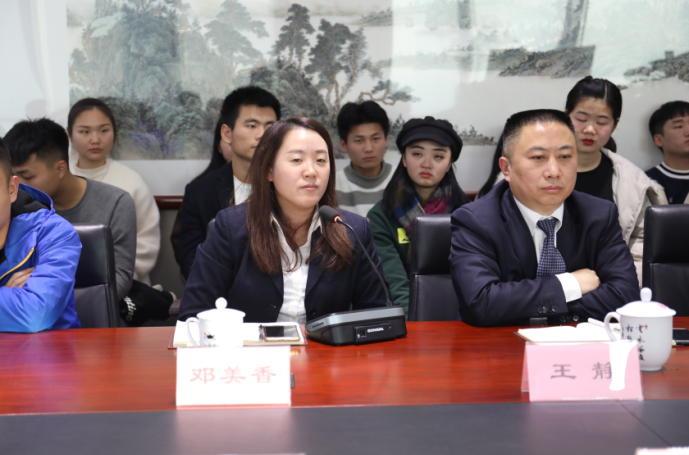湖南沃成科技有限公司副总经理邓美香则亲切的与同学们聊起了自己的职业生涯故事,让大家真真切切地感受到一名职场人的酸甜苦辣,幽默睿智的语言,赢得同学们阵阵掌声。
