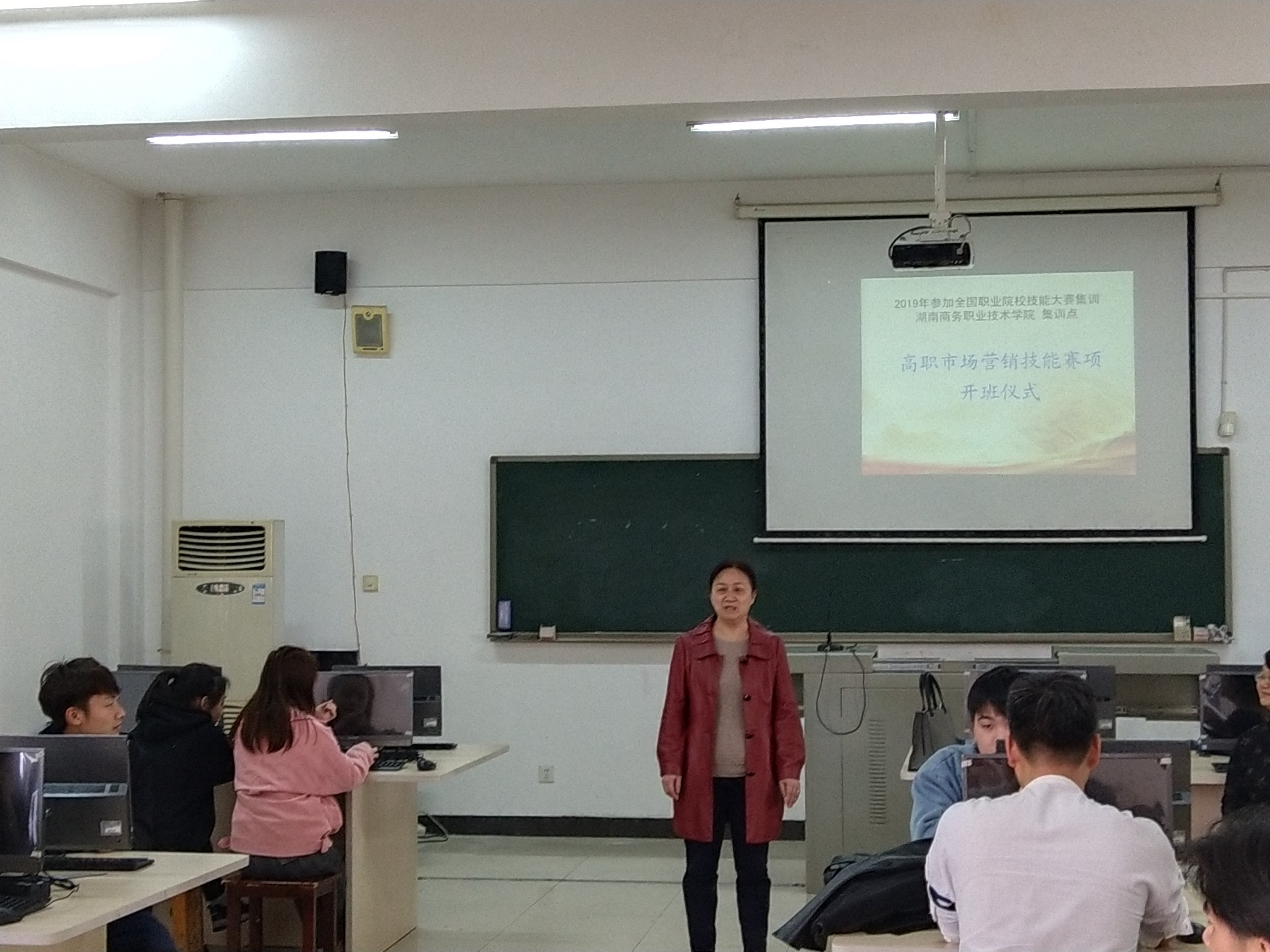 3月11日下午2点,2019年参加全国职业院校技能大赛湖南商务职业技术学院集训点高职市场营销技能赛项开班典礼在实训楼305教室举行。