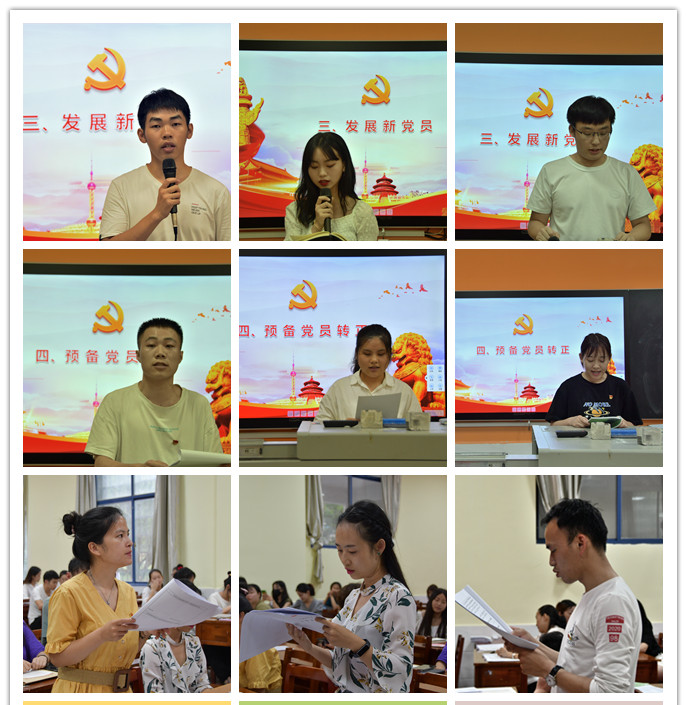 大会严格按照发展党员程序讨论了王海辉等18名入党积极分子发展入党和刘福等21名预备党员期满转正相关事宜,39位同志分别讲述了培养考察期间自己的各方面表现以及对党的忠诚和向往之情,入党介绍人对新发展党员及中共预备党员预备期内的表现情况做了全面而客观的分析评价,与会党员代表师生真实反映了发展对象和转正党员在支部各方面的表现,支委会报告了对其亲属及主要社会关系的政审和公示情况,表决采取无记名投票方式进行,当场形成并通过了支部大会决议。