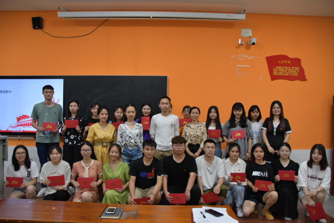 首先,全体党员观看视频《初心,从未改变》,该片从历史和现实的交汇中展开,以影像为我们诠释了初心的内涵,令人印象深刻。党员们纷纷表示,生命逝去,坚守不渝的信仰不能逝去;时代巨变,追逐梦想的初心不能改变。随后,学生党员王潇同志领学文件《一心为民 习近平这些改革话语历久弥新》,让同志们明白人民是改革的主体,要坚持一切为了人民、一切依靠人民,发挥好广大人民群众的积极性、主动性、创造性,使广大人民群众成为推动改革开放的强大力量。紧接着,全体党员同志重温入党誓词,学生党员代表黄丹丹同志重读入党申请书,对照入党宣誓时的庄严承诺,回顾了自己的入党初心。支部教师党员为每一个过政治生日的党员赠送政治生日贺卡并合影留念。伴随着同志们雷鸣般的掌声,本次“铭记政治生日,牢记党员责任”党日活动圆满结束。